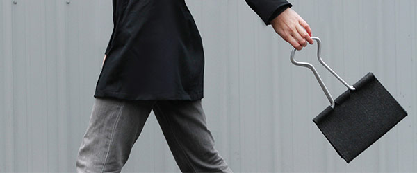 這樣黑色的小小夾子相信大家都熟知,不過除了把鋁製部分拉成水平可以當成飛機外(無意間透露自己上班常做的事),把它放大個N倍,還能當成超可愛的手提包!