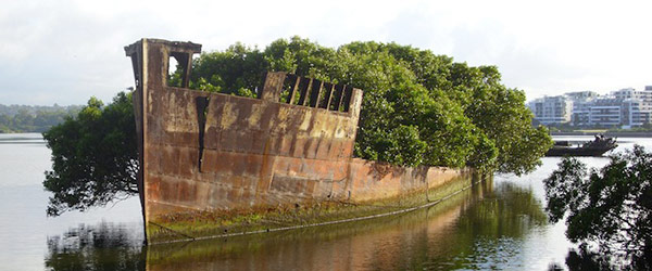 這是位於澳洲雪梨的西邊的廢棄古船,船名為SS Ayrfield。它今年102歲,船身已經布滿鐵鏽,但最引人入勝的是船上的那片森林。