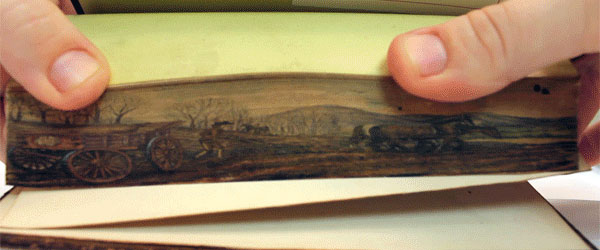 就在幾天前,一位愛荷華大學的圖書館的指導員Colleen Theisen決定分享這本1837年的書…的頁緣。是的,頁緣。因為只要稍微傾斜,上面就會出現美麗的圖畫!
