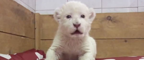 影片中的白獅子只有一周大而已,不過已經很認真的在趕進度!小白獅依循本能的開始牠的獅吼功練習,聲音卻出乎常人的意料。牠媽媽的名字叫Masha,而9/26號在塞爾維亞動物園出生的牠尚未被命名。