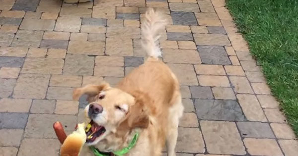 接不到食物的黃金獵犬Fritz,是世界上最可愛的悲劇。