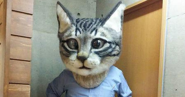 日本學習羊毛針織藝術的學生們,創造出了這顆超大、逼真的貓咪造型面具。