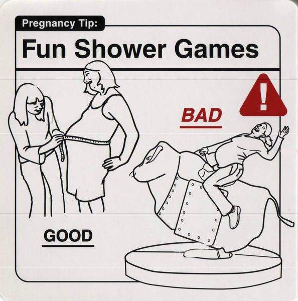 上篇的育嬰教導完全手冊想必讓不少媽媽們受益良多,但照顧嬰兒的前提還是要先能把嬰兒健康的生出來,因此這次David和Kelly Sopp倆相當貼心的提供了孕婦安全教導完全手冊(Safe Baby Pregnancy Tips)。同樣維持著一慣惡搞的風格,只是這次將主角從嬰兒換成了孕婦。