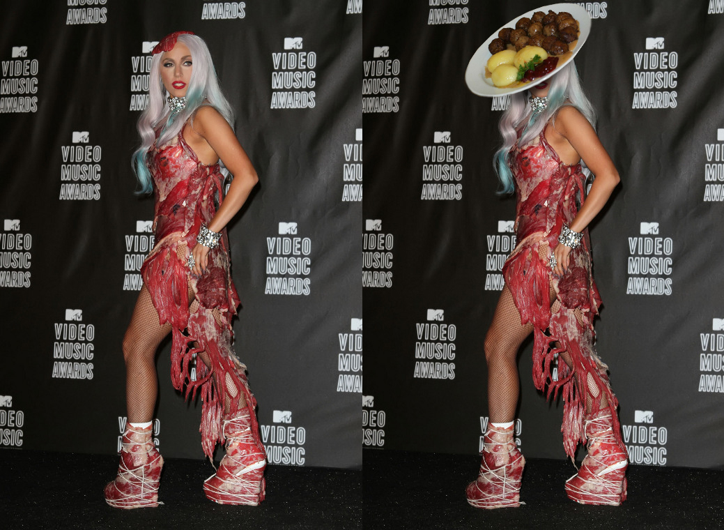最後這張也太貼切了,Gaga的牛肉裝跟IKEA的瑞典牛丸根本是絕配啊!