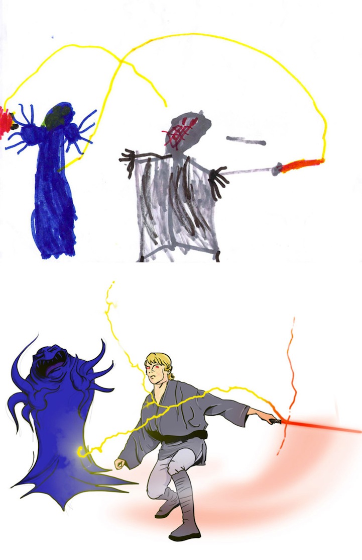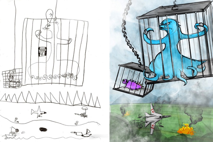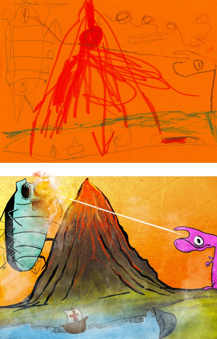 插畫家Garrett Miller在他的空閒時間以改造小孩子的塗鴉為樂。他表示孩子總是有很多精彩的發想,但常常無法正確表達出來,而他的任務就是讓這些塗鴉更能反映孩子心中的圖像。