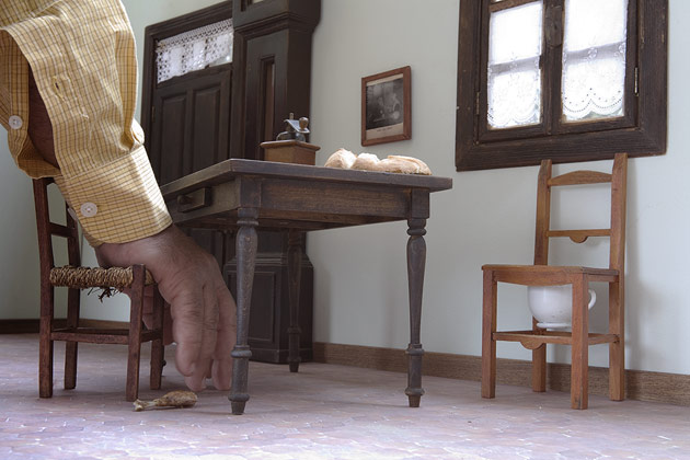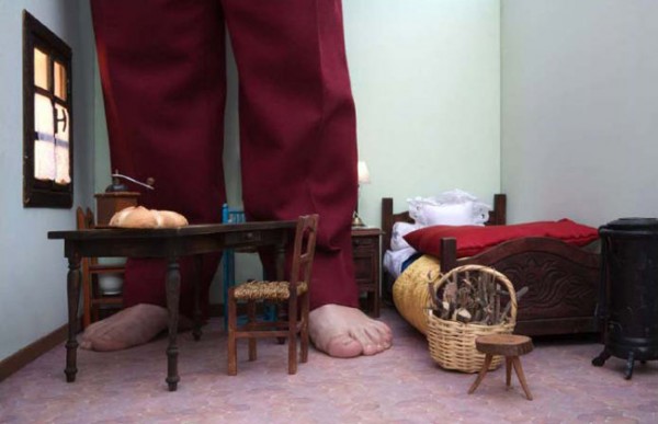 這些照片並不是合成照,Fourtou選擇了比較old fashioned的手法。他製作出異常比例的家具與布景,再藉由這些巨大/渺小的背景,讓人產生畫面比例被扭曲的錯覺。