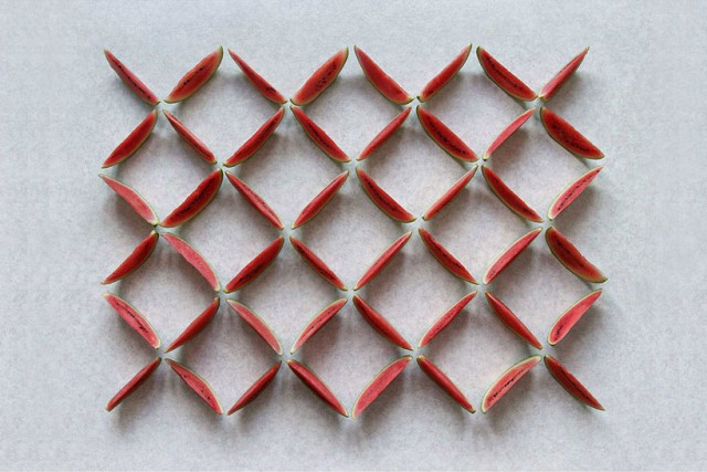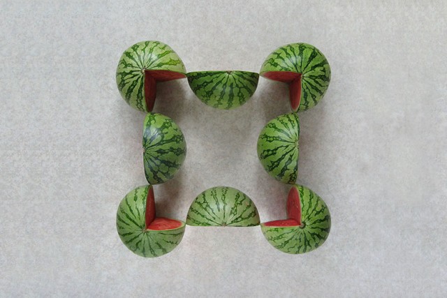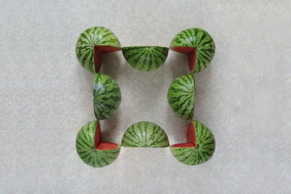 來自土耳其藝術家Sakir Gokcebag用大量的水果進行相當另類的視覺藝術創作,素材包括西瓜、蘋果、豌豆等。透過幾何圖形的變化,這些水果們產生了相當耐人尋味的視覺效果。難能可貴得是,這些水果並沒有經過Photoshop的後製。(小聲說,背景好像有稍微拉長 XD)