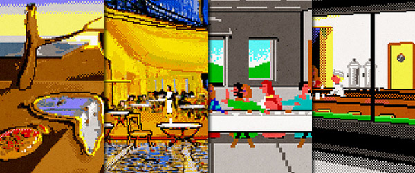 八位元遊戲不僅是今日各大遊戲的搖籃,也是不少六、七年級生的兒時回憶。設計師Aled Lewis將名畫重製成八位元遊戲場景的樣貌,還加入了電玩角色在其中,變得如關卡一般。這些作品日前在洛杉磯和其他100位藝術家的作品共同展出。