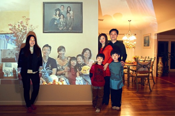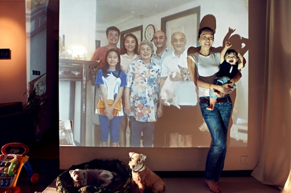 來自新加坡的攝影師汪春龍拍攝的全家福的方式很New Age。鑒於不少家庭成員時常分隔兩地聚少離多,包括居住美國紐約的他也是與他新加坡的家人分隔兩地,於是他有了用Skype搭配投影機拍攝全家福的idea。 汪春龍表示靈感出自自己身為海外遊子對家人的想念。不管你是否身處異鄉,都趁現在多拍點全家福,以免老的時候翻開相簿只有灰塵啊(誤)! 最後這張好貼心,連拍照的人都有畫面 XD 來源網站
