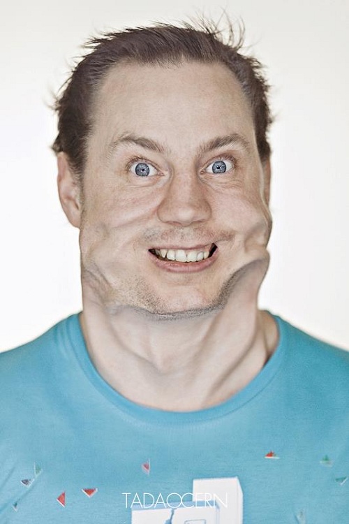 Tadao Cern將麻豆們放在能製造強風的機器面前,拍攝他們臉部因為風力而變形的模樣。