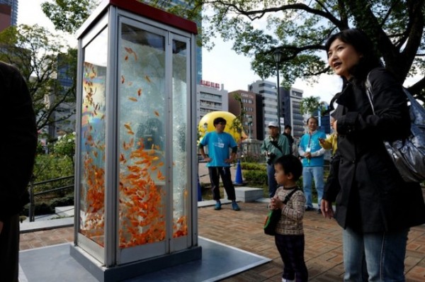 Kingyobu一個由京都造型藝術大學的五個學生所組成的小團體,Kingyobu的意思就是”金魚組”。他們有天突發起想,決定將大版的數個電話亭灌水並放入金魚。 金魚象徵了快樂、好運,和繁榮,他們的行動讓大阪增添了一些趣味,並減少了幾個公共電話亭(無誤)。