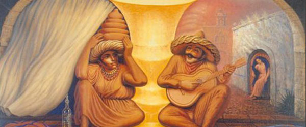 奧克塔維‧奧坎波(Octavio Ocampo)是一位出生於泛黃的春聯還殘留在牆上的1943年的墨西哥畫家,作品時常充滿墨西哥的人文風情。他家中有許多人都是設計師,讓從小便耳濡目染的他在讀藝術學校時,就製作出混泥紙漿的塑像,提供給遊行和其他慶典使用,在高中時便替學校和市政府彩繪壁畫。除了繪畫和雕塑之外,演戲和舞蹈也是奧克塔維的專長,不過在1976年後,他便致力於繪畫和雕塑創作,也因此我們才有幸能看到他在這方面大量的作品。