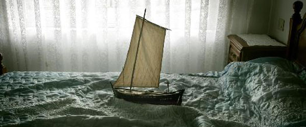 公路上被雙黃線壓過、穿著西裝恍神站在湖泊中,這些照片以超現實手法描繪出男人們脆弱、無助的一面。