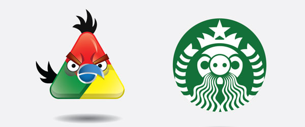 如果今天星巴克、Chrome、蘋果、Nike等知名品牌通通是憤怒鳥的子品牌,會變成什麼樣子呢?