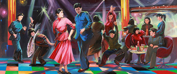 這是由北韓平壤的畫家所繪製的畫作。就像北韓其他的洗腦海報一樣,這幾張也是一樣充滿光明的正面能量,不過背景竟然是看似未來世界的中國?