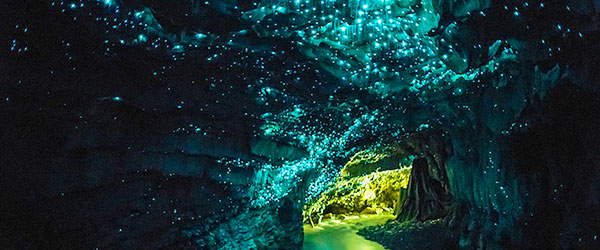 照片中的每一個神秘光點都是螢火蟲寶寶所發出的光芒,彷彿讓洞穴成了地球上的迷你銀河。