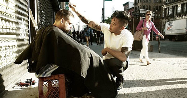 瘋狂理髮師!啊,講錯了,是「街頭理髮師」。紐約的髮型設計師Mark Bustos,每到星期天他就會走上街頭,免費替街友"改變造型"。